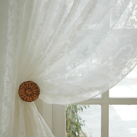 Two Panels Country Floral / Botanical White Dining Room Polyester Sheer Curtains Shades